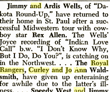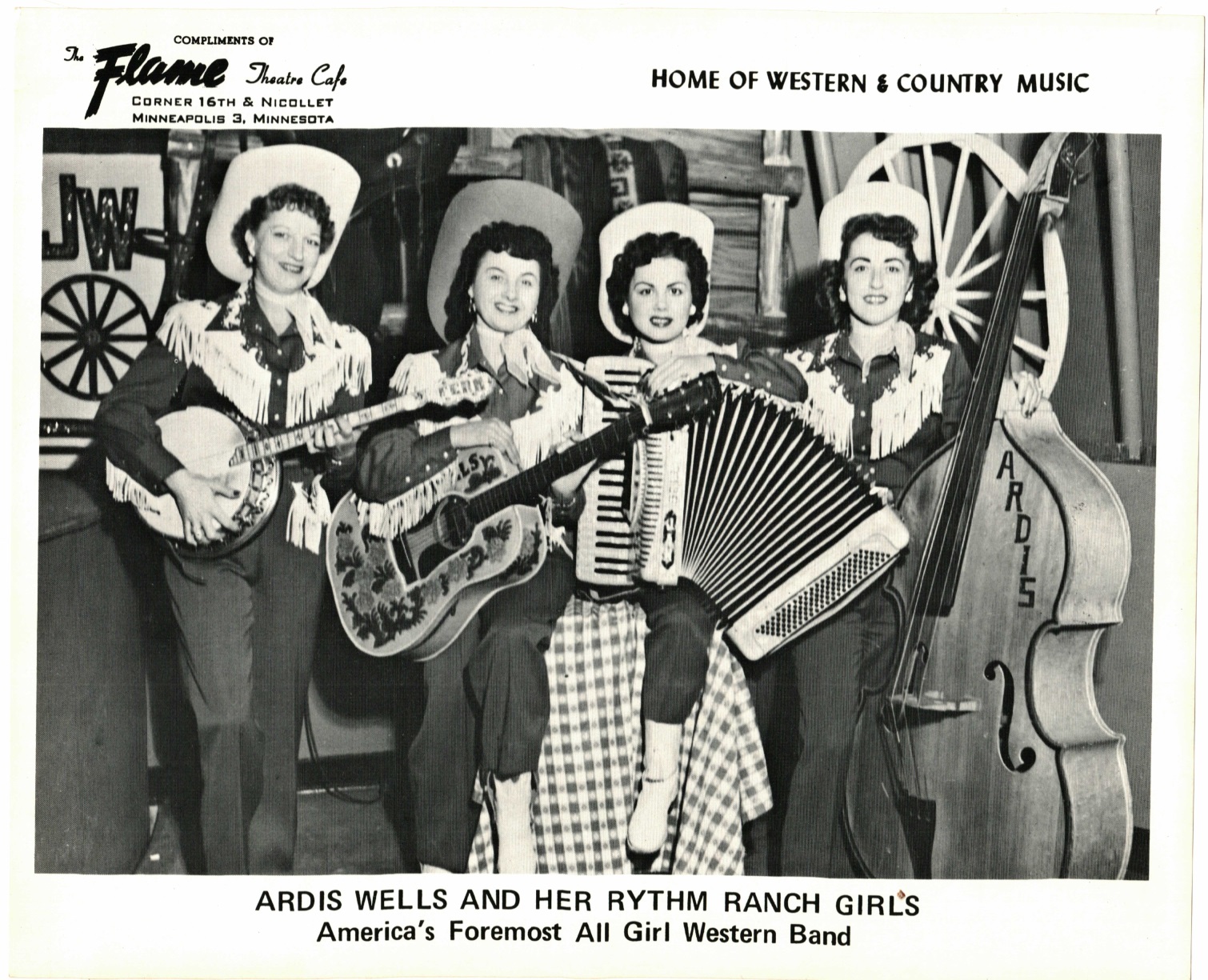 Around March of 1956, she formed her own all-girl western band, known as the "Rhythm Ranch Gals". (The group members are listed below.) The got themselves a bit of a name as one of the better western bands in the country at the time. They appeared nightly in the cocktail lounge of the Flame Supper Club in Minneapolis. On top of that, they also appeared on KEVE each Saturday and made a variety of personal appearances in the Twin Cities area.