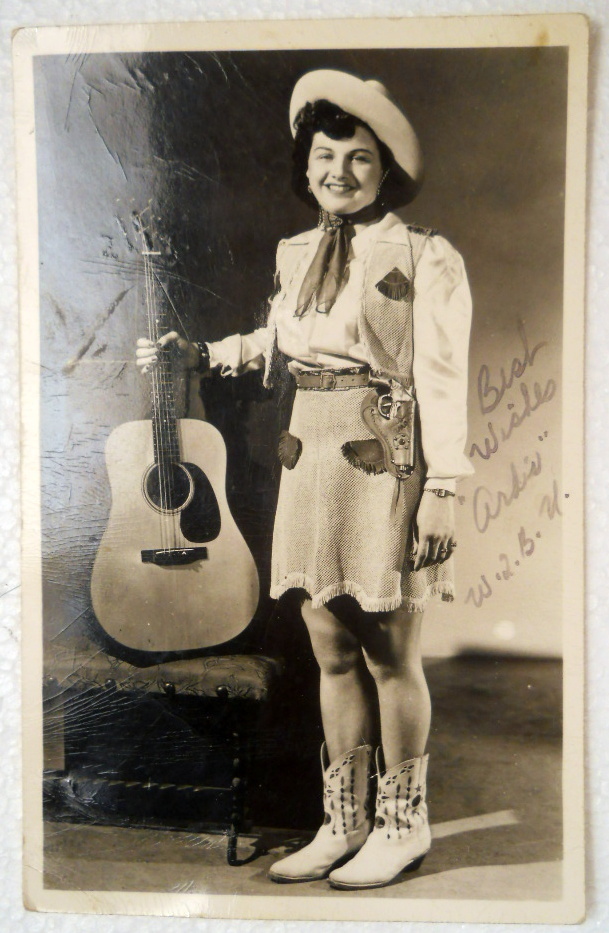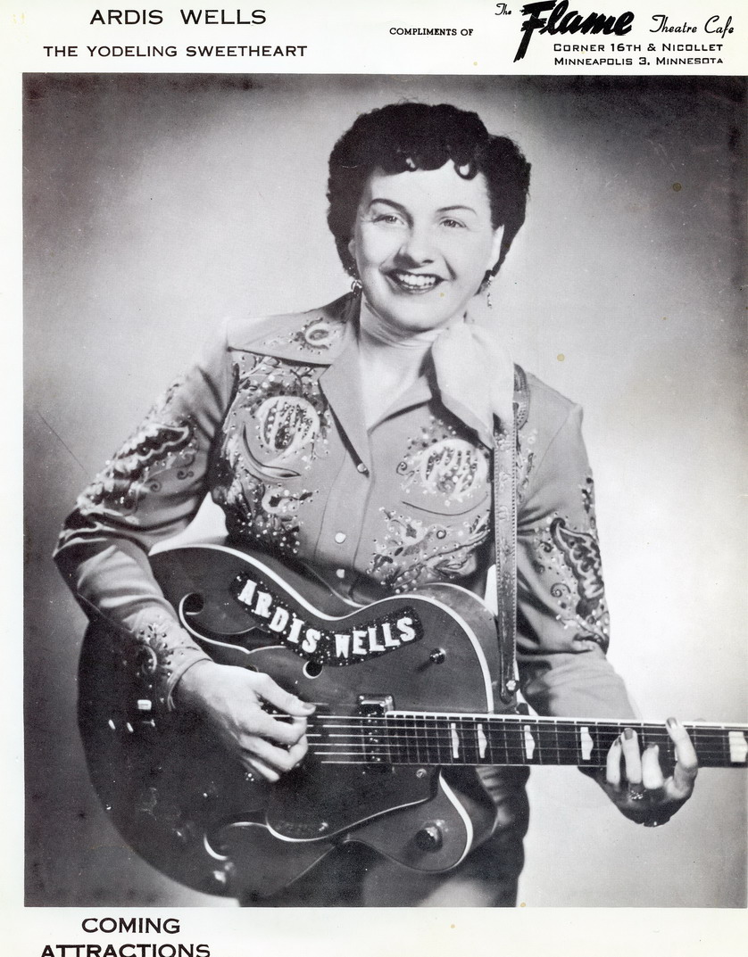 She was born into a family of show people and follwed the circuses and carnivals for many years. Then, she became the "The Yodeling Sweetheart" as part of a western band. The Cowboy Songs (Dec. 1957) article quotes Ardis as saying she had to do quite a bit in her career. She said she had to swim, wrestle, dance, ride a horse, design clothes, ride elephants and even do trapeze tricks. Later, she would write music, play the ukelele, bass fiddle, accordion, electric guitar to go along with her singing and yodeling talents. It was also reported she could do a bit of wrestling. She reportedly wrestled profesional for over two years and actually won 21 straight matches in St. Paul, Minnesota.