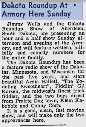 She was married to a country singer, Jimmy Wells who worked with 'his Dakota Roundup Gang'.