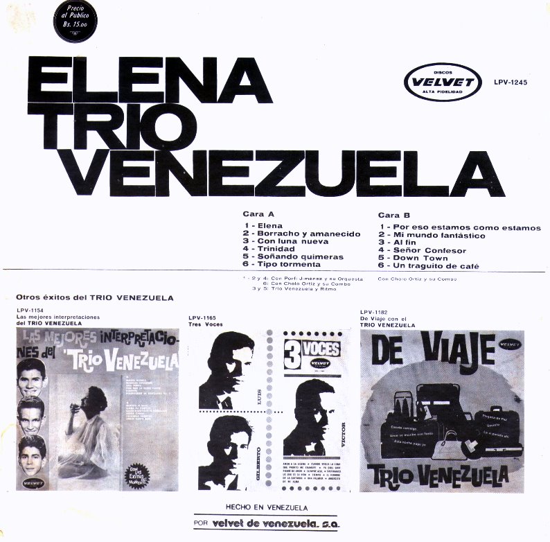 Hier also die LP von Victor Mendoza, Luis Ferrebus & Gilberto Jimenez, dem Trio Venezuela.