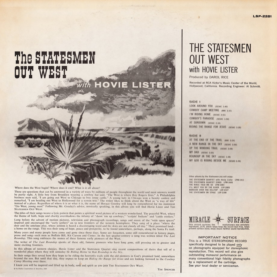 ganz interessant ist das Statesmen Quartet, schließlich gibt es eine Verbindung zu einem