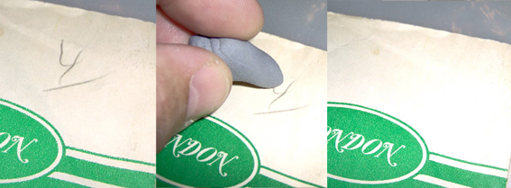 Ganz einfach - das Knetgummi besteht aus einer Gummimasse, die an Knete erinnert, man knapst sich ein Stück des Radiergummis ab und kann dann mit diesem extrem sanften und weichen Radiergummi auch sehr empfindliche Oberflächen sanft radieren. :idea: