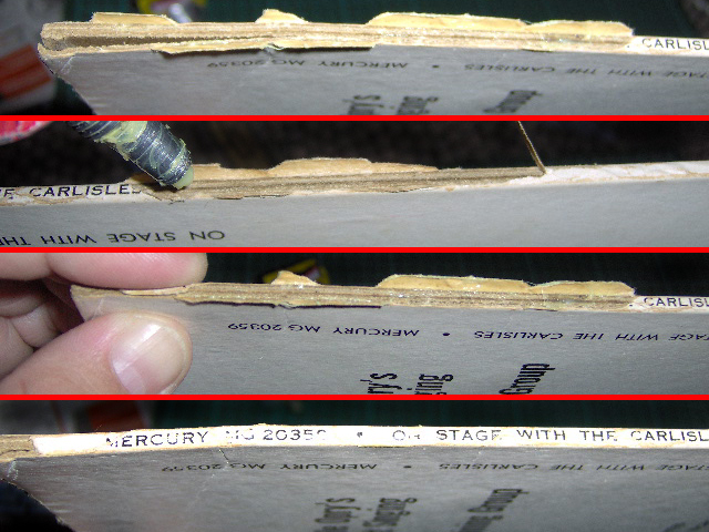 Besonders "gefährlich" sind solche Seam-Splits am Einschub - durch das Reinschieben und herausnehmen der Platte kommt es oft wieder zu Einrissen an diesen Stellen. Wenn dann auch noch einige Papierfetzen an der aufgeplatzten Kante fehlen passiert dies um so häufiger.