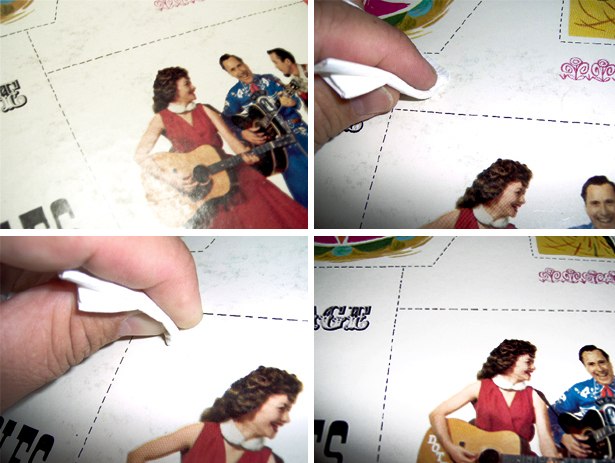 Oft findet man LP's mit vielen Schmutzstellen auf dem Cover. Gerade bei sehr hellen Covern fällt dies natürlich negativ auf.