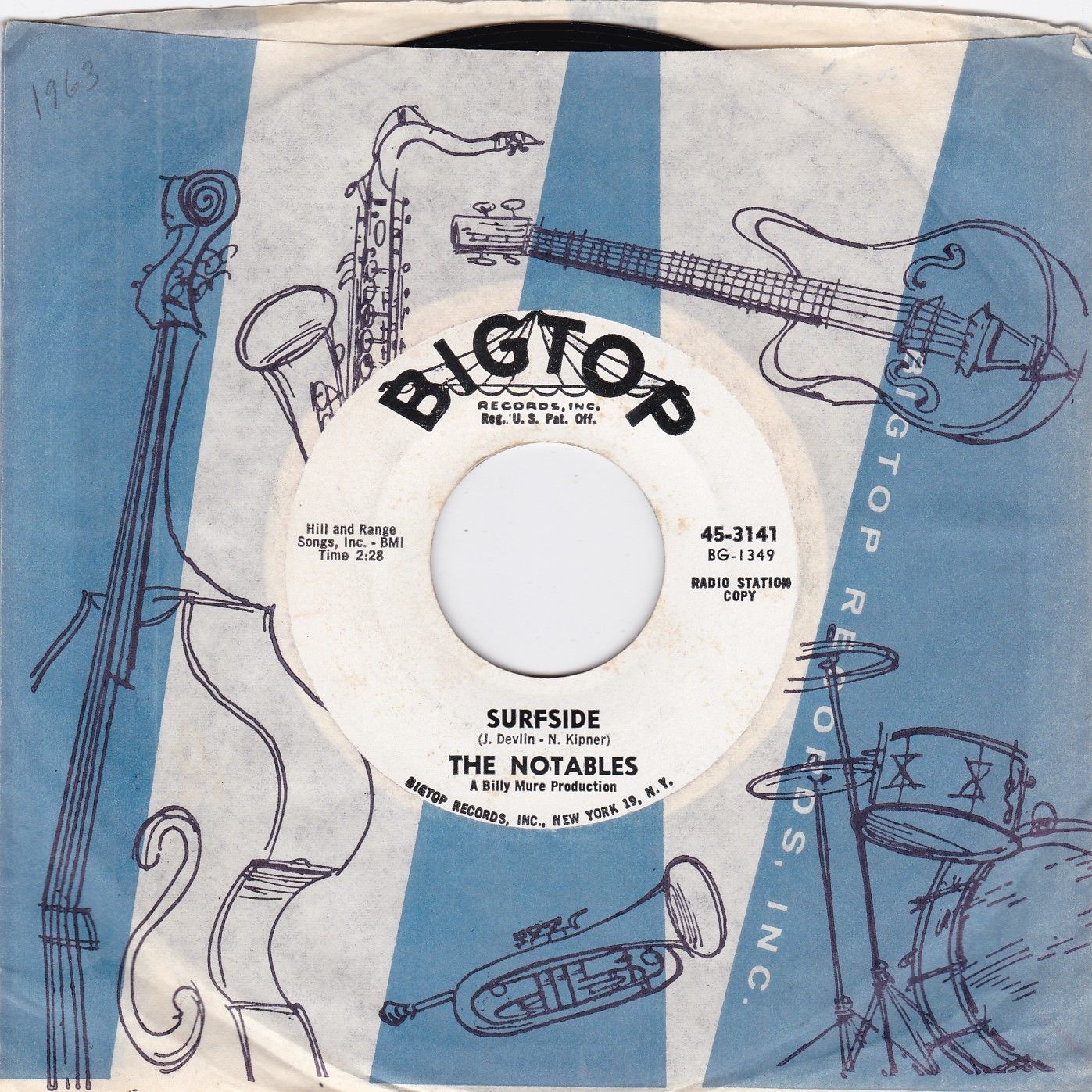 Big Top 3141 (1963), deutsche Matritzenherstellung G 3 ( Juli/1963), Bildcover, Composer von A : “ Davlin - Kipner ” und B : “ Davlin - Kipner ”, deutsche Platte auf schwarzem Label, Placierung Hitparade in den USA: ??