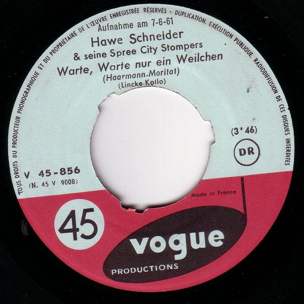 06 61....V. 45-856....Hawe Schneider & seine Spree City Stompers..Warte, Warte nur ein Weilchen (Haarmann-Moritat)/American Patrol
