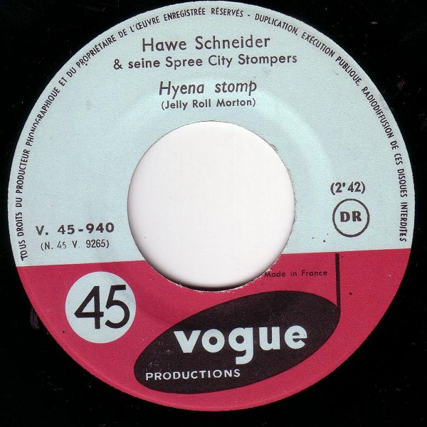 04 62....V. 45-940....Hawe Schneider & seine Spree City Stompers..Hyena stomp/Was eine Frau im Fruhling träumt