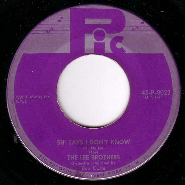 12 54….45-P-0022….THE LEE BROTHERS Orchestra conducted by Don Costa..Sh' Says I Don't Know (No No No) (J.P. 1-111)/Don't Get Around Much Anymore (J.P. 1-112)