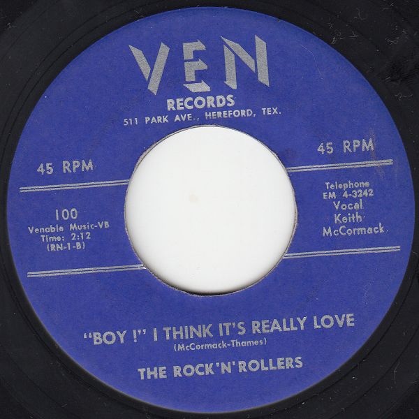 01 58....100….THE ROCK'N'ROLLERS - Vocal Keith McCormack..For You (RN-1-A)/"Boy!" I Think It's Really Love (RN-1-B)