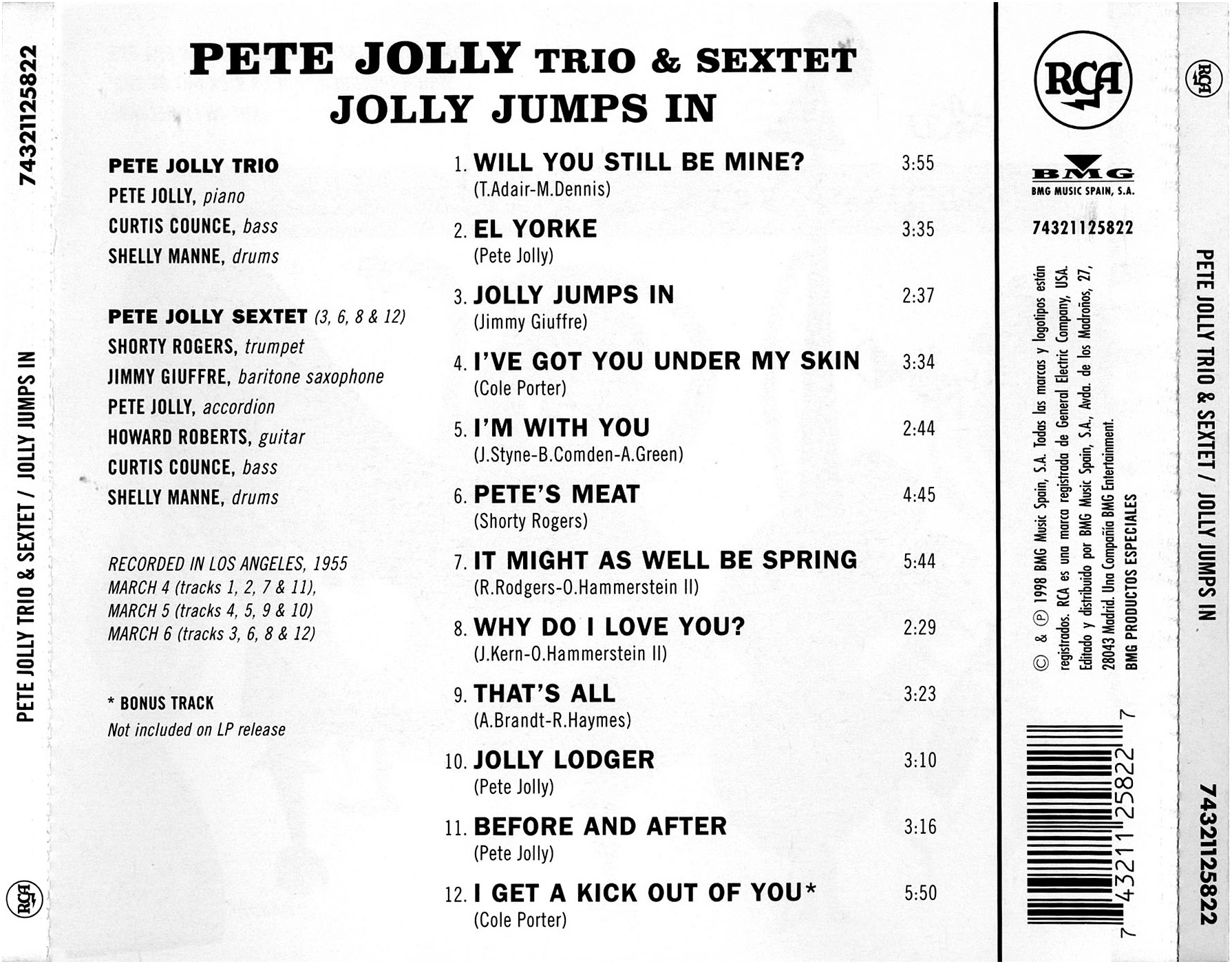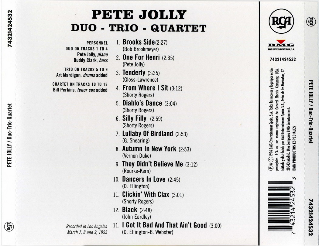 Pete Jolly starb im November 2004 im Alter von 72 Jahren in Pasadena, Kalifornien, an den Folgen eines Multiplen Myeloms.
