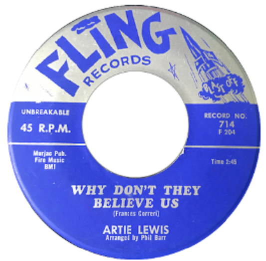 12 60….5 0 0 9….ARTIE LEWIS..Alone, All Alone/Why Don't They Believe Us? (FLING 714)