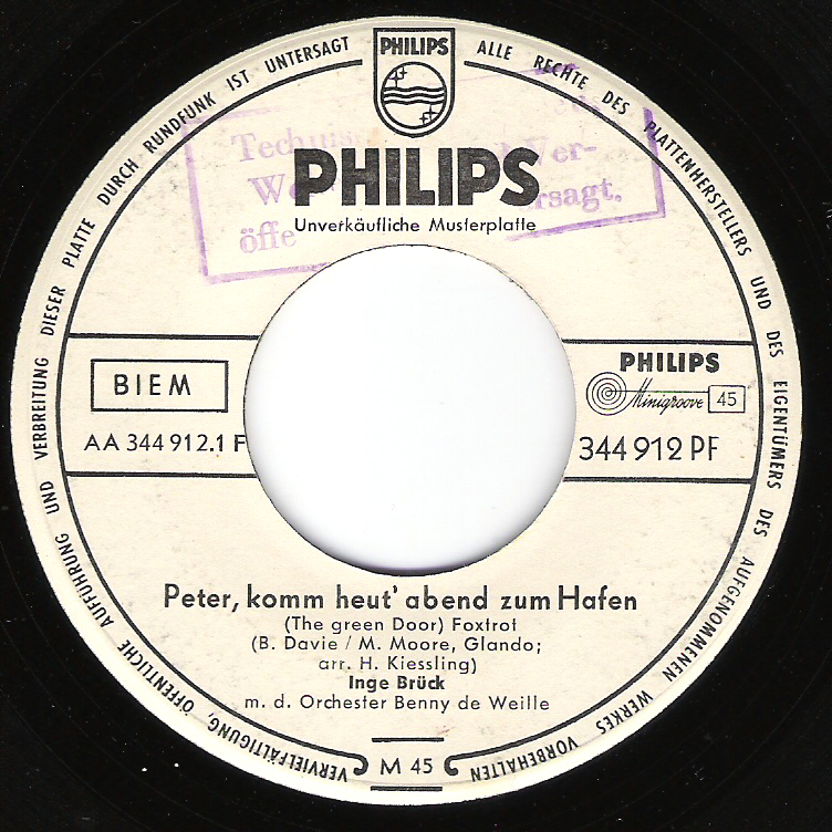 Die Inge Brück Single wird es mit Bildcover wohl nicht gegeben haben, sie erschien im Firmenlochcover, es gibt auch eine deutsche Pressung.