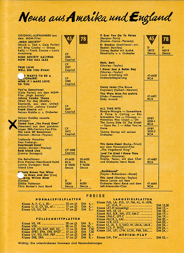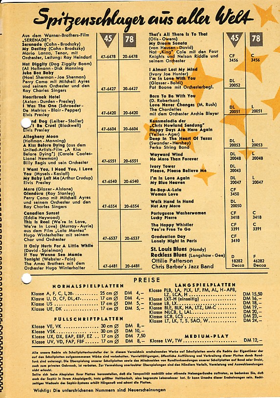 Irgendwann im Jahre 1956 gingen die Rechte and den Capitol Aufnahmen von der Telefunken-Decca and die Carl Lindström - nur wann genau, also mit welcher Platte?