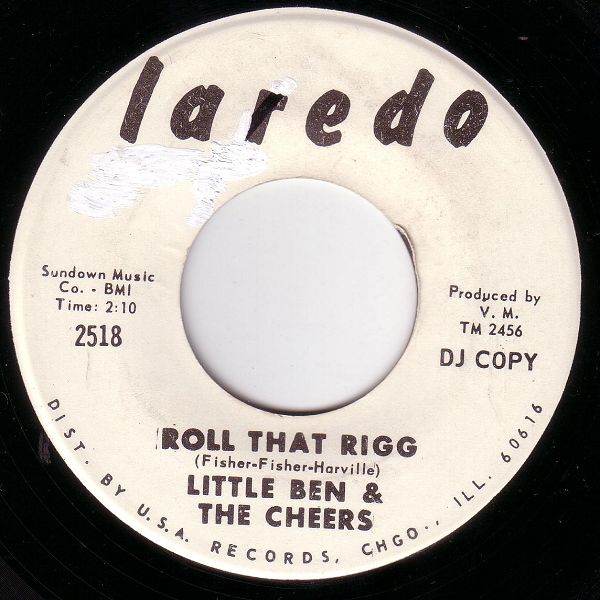 Das Mutter-Sohn-Team hatte auch Gospel-Größen wie beispielsweise die Norfleet Brothers unter Vertrag. Der Mutter Violet gefiel der Song "Roll That Rigg" offenbar so gut, dass sie ihn neuerlich auf den Markt bringen wollte. Zum schnell Einspielen stand möglicherweise gerade nur die Soul-Formation Little Ben & The Cheers zur Verfügung. So kamen Soulsänger kurzfristig auf BANDERA's Sub-Label LAREDO zu Rockabilly-Ehren und dafür stelle ich die Burschen jetzt auch vor.