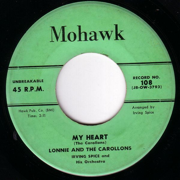 ?? 58….108….LONNIE AND THE CAROLLONS IRVING SPICE and His Orchestra..My Heart (J8-OW-3793)/Chapel Of Tears (J8-OW-3794)