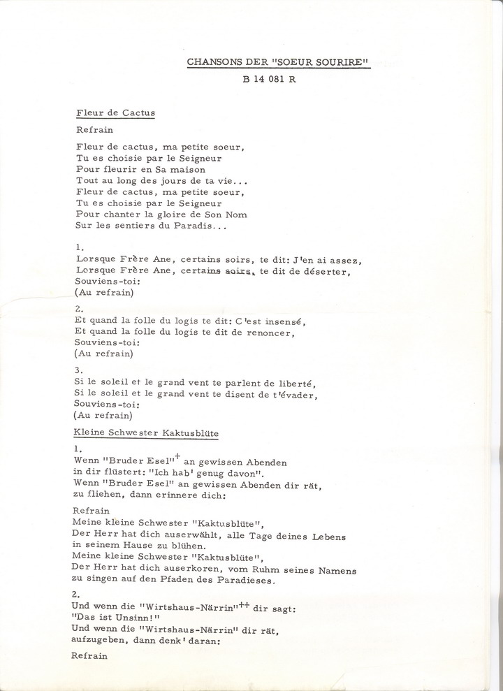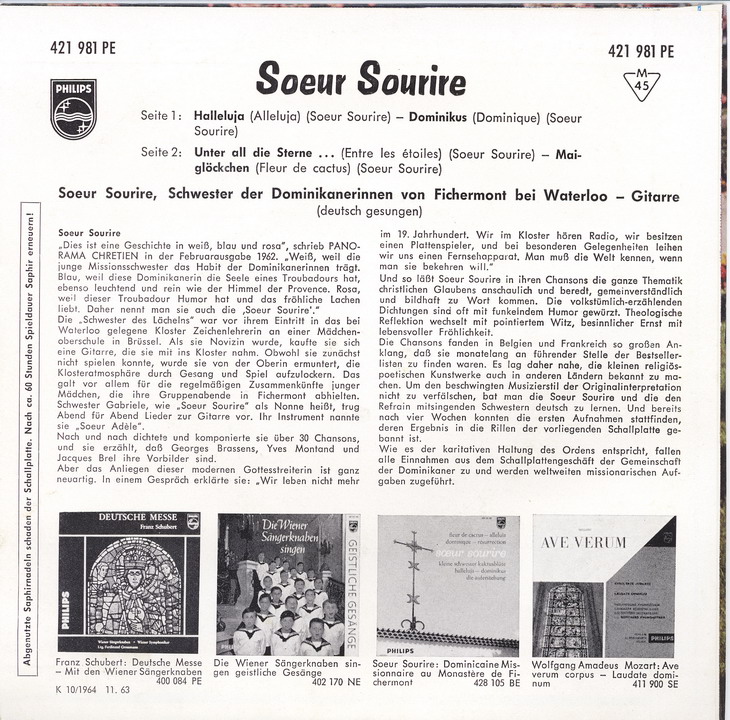 Ordensnamen SOEUR SOURIRE ab Ende 1963 mit dem