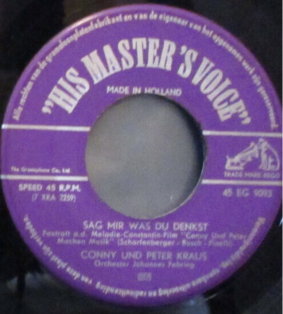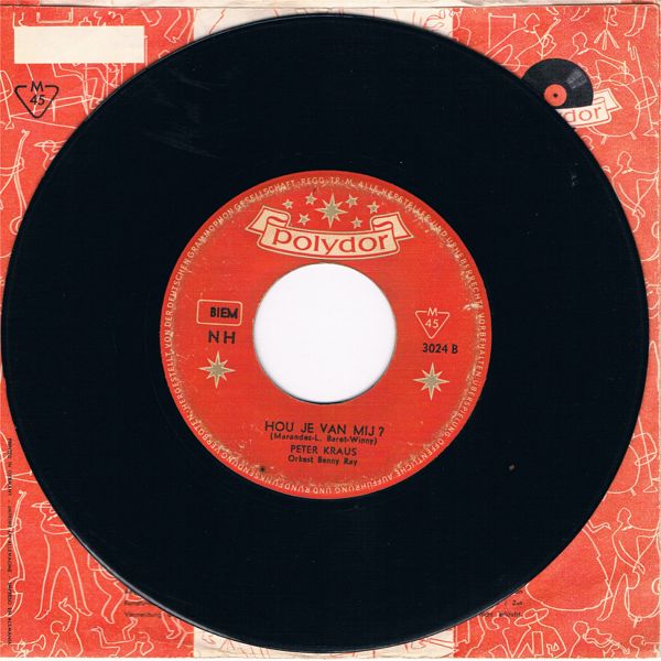 Das war einmal die Einleitung und jetzt kommt zu Dieter's schöner Bildhülle auch der Inhalt damit man zum Beispiel auch die Autoren weiß und allenfalls Schlüsse ziehen kann (siehe Scans aus dem Netz). Ich kann es leider nicht definitiv sagen aber ich denke, beide Titel wurden extra für Peter Kraus geschrieben und der romanisch klingende Name Marandez dürfte auch nichts Anderes als ein Pseudonym aus dem belgischen Raum sein. Apropos Belgien, 45cat hat diese Single irrtümlich den Niederländern zugeschrieben, die haben aber eine 1000er Nummernserie, die 3000er-Serie ist eindeutig belgisch was aber nicht unbedingt ausschließt, dass eine für Belgien hergestellte Single auch auf dem holländischen Markt auftaucht. Bei Benelux ist das nichts Aussergewöhnliches.