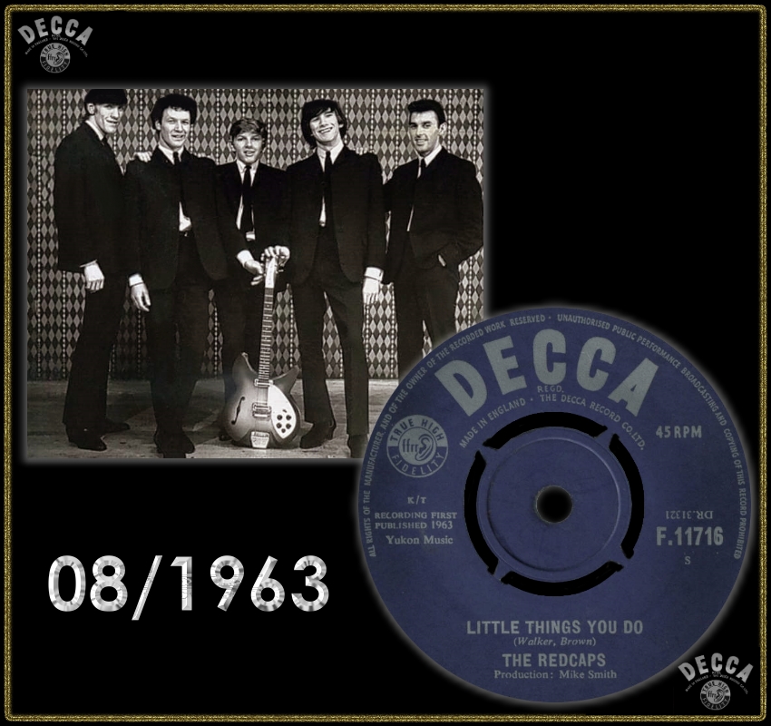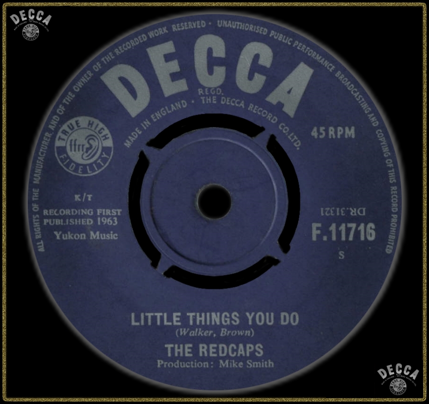 Die erste Decca-Single der Redcaps, “Shout“, war eine Cover-Version eines US-Hits der Isley Brothers, der dann von Lulu and The Luvvers gecovert wurde, allerdings etwa zwölf Monate nach der Veröffentlichung der Redcaps. Die Kehrseite der Redcaps-Version war “Little Things You Do“, geschrieben von Mick und Dave Walker und dem Leadgitarristen Roy Brown – was den ersten ernsthaften Ausflug der Jungs ins Songwriting markierte.