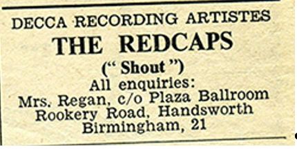 Im März 1964 hatte der erwähnte ‘Midland Beat‘ eine Anzeige veröffentlicht, in der die Leute eingeladen wurden, dem 'Official Redcaps Fan Club' beizutreten. Die Anzeige wurde von der Fanclub-Sekretärin Cheryl Skipp aus Handsworth in Birmingham gepostet, nicht weit von ihrem Stammort The Plaza entfernt.