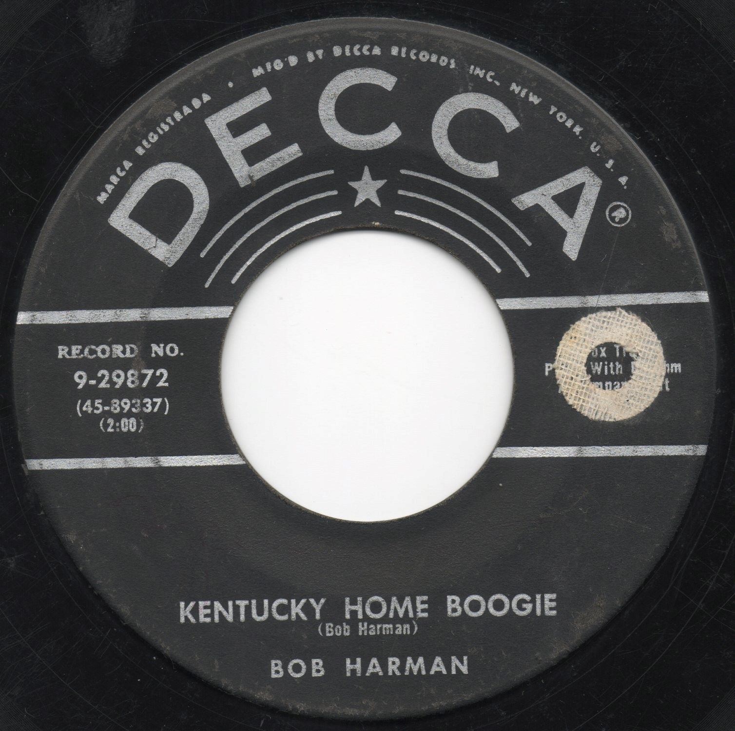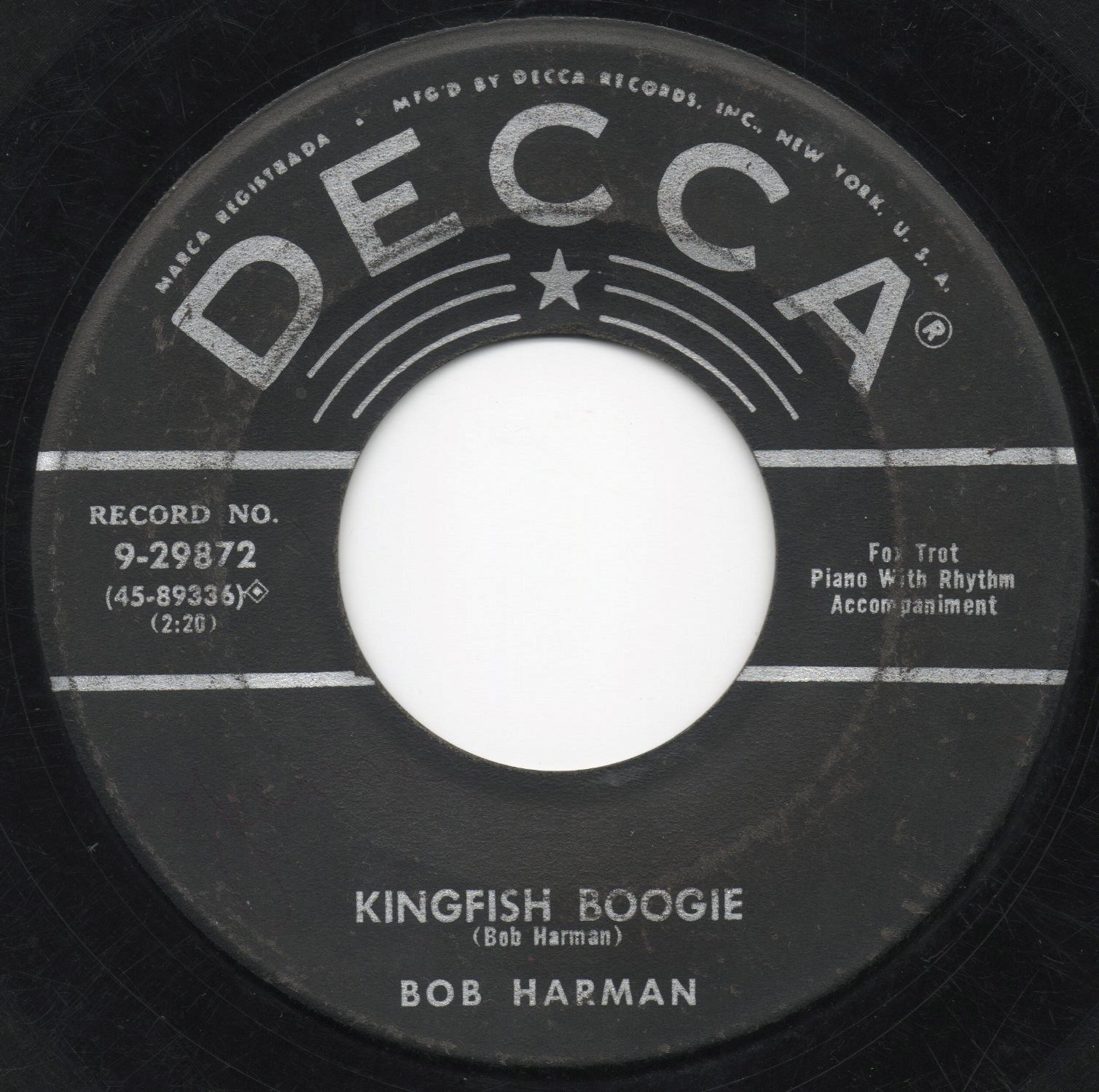 05 56….9-29872….BOB HARMAN..Kingfish Boogie (45-89336)/Kentucky Home Boogie (45-89337)