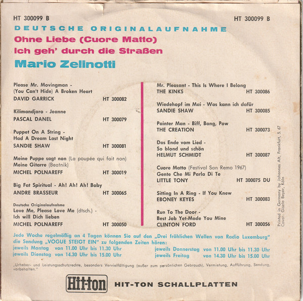 "Cuore Matto (deutsche Version = "Ohne Liebe")" und "Bada Bambina".