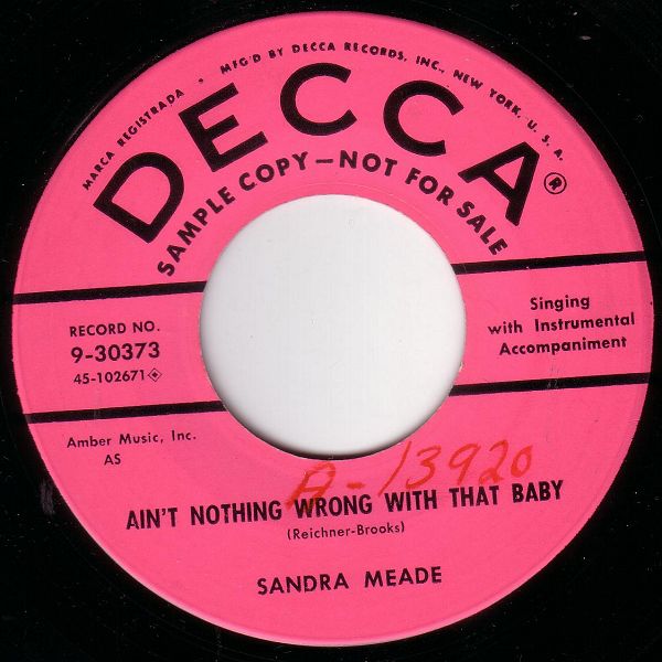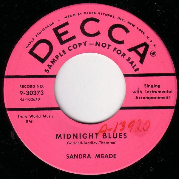 07 57....9-30373....SANDRA MEADE..Midnight Blues (45-102670)/Ain't Nothing Wrong With That Baby (45-102671)