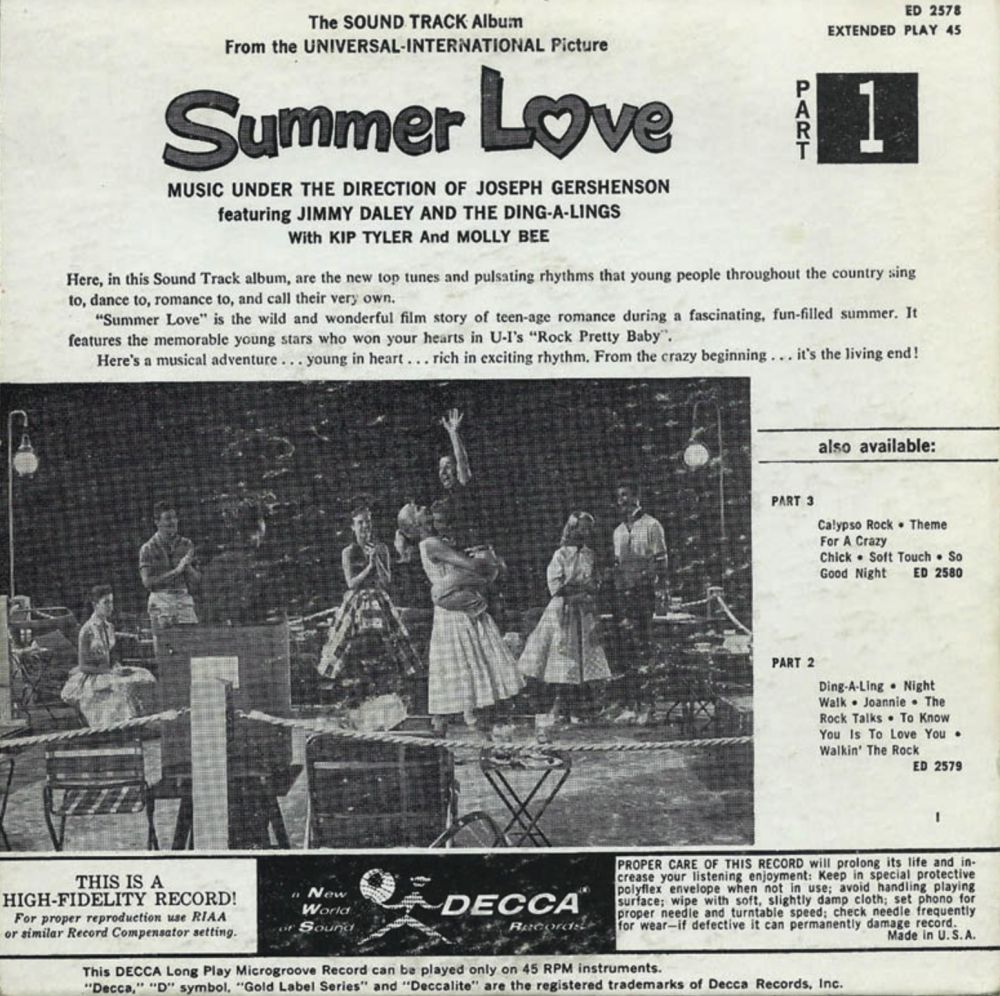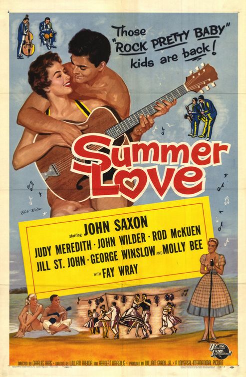 Summer Love (1958)… John Saxon, Molly Bee, Rod McKuen, Judi Meredith, Jill St. John, George Winslow, Fay Wray, Edward Platt, Shelly Fabares, Troy Donohue. Family-oriented sequel to Rock, Pretty Baby.