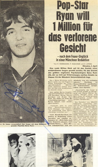 Im Jahr 1969 erhielt Ryan den Bronzenen und 1970 den Silbernen Bravo Otto der Jugendzeitschrift Bravo. Bei Fotoaufnahmen für die Bravo gab es im Jahr 1969 einen Unfall, bei dem Ryan angeblich schwere Verbrennungen erlitt; es wurde vermutet, dass der Unfall zu Publicity-Zwecken stark dramatisiert wurde.
