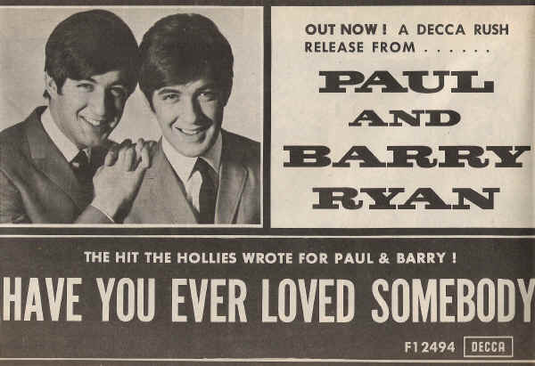 Die Ryan-Brüder veröffentlichten in den 1960er Jahren bei Decca Records mehrere erfolgreiche Hit-Singles, darunter Don't Bring Me Your Heartaches (1965), Have Pity On The Boy (1966) und I Love Her (1966), die sich in der britischen Hitparade in den Top 20 platzieren konnten. Ihr von Top-Designern durchgestyltes photogenes Aussehen, die eingängigen Songs und Barrys unverwechselbare Stimme verschafften ihnen zahlreiche Tourneen, Auftritte in TV-Shows und eine hohe Medienpräsenz in den damaligen Pop-Jugendzeitschriften.