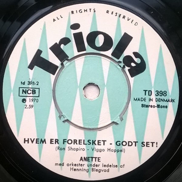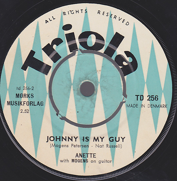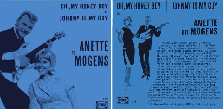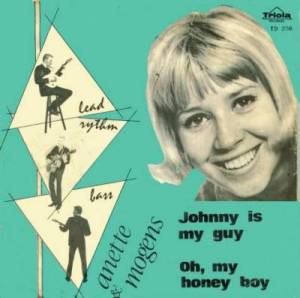 die Sängerin Anette Blegvad (geb. am 09.03.1942 in Kopenhagen) und der Gitarrist Mogens "Django" Petersen (geb. 06.09.1942 an einem mir bislang unbekannten Ort) hatten 1965 mit der schönen Beat-Pop-Nummer "Johnny Is My Guy" (Rückseite "Oh, My Honey Boy") solchen Erfolg, dass sie kurz darauf mit einer deutschsprachigen Version der Platte aufwarteten: