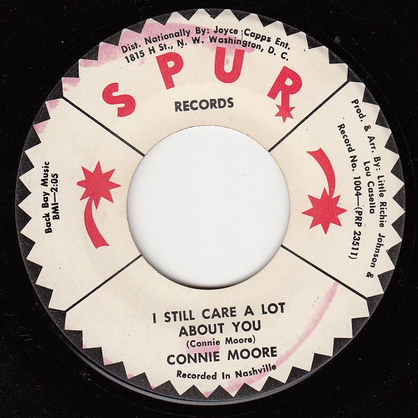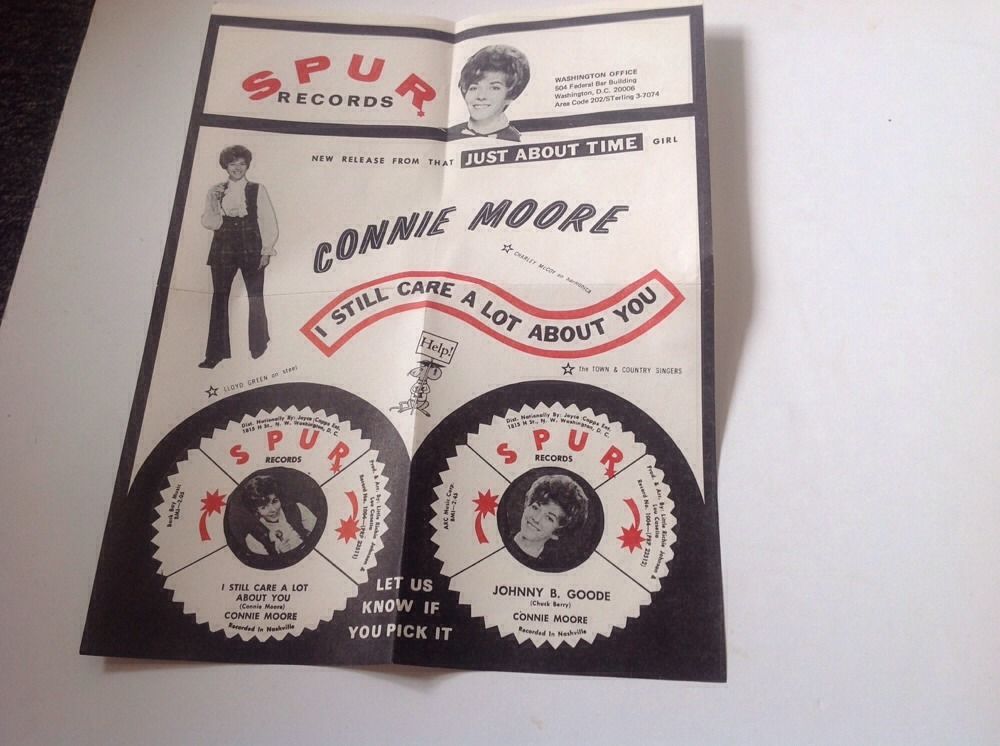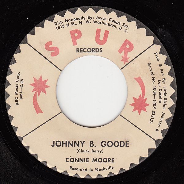 Die Country-Sängerin der Siebziger Connie Moore, die so gut wie alle ihre Songs selbst schrieb, hat mich arg getäuscht, natürlich ohne ihr Wissen. Vor Jahrzehnten fand ich auf dem Flohmarkt eine Single des Labels SPUR dessen Design ich sehr nett fand. Ausschlaggebend für den Erwerb war aber nicht das Label-Design oder der geringe Preis, sondern der Titel "Johnny B. Goode". Soweit ich bisher eruieren konnte war dies der einzige Titel, den sie nicht selbst schrieb, es war nämlich die Chuck Berry-Nummer.