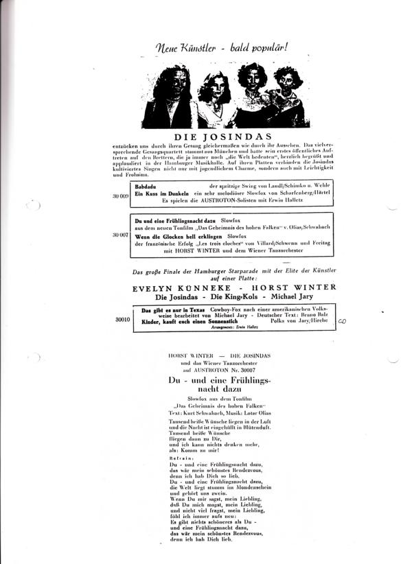 Gesang: Evelyn Künneke & Horst Winter & die Josindas