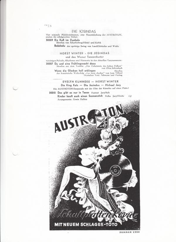 Die wenigen Plattenaufnahmen, bei denen ich sie namentlich registriert habe, sind alle für die Austroton entstanden. Ihr Gesang kann sich absolut hören lassen. Umso mehr ist es schade, dass dieses Quartett nur zwei bis drei Jahre existierte.