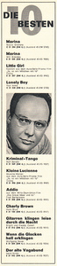 Der Babysitter der Nation, Ralf Bendix (geb. als Karl-Heinz Schwab am 16.08.1924 in Dortmund, gest. am 01.09.2014 in Sansstad-Fürigen, Schweiz) war als Sänger ein Spätstarter, er fing erst 1955 an, professionell zu sinden, da war er längst Dr. jur. Obwohl ein wenig zu alt für einen Rock'n'Roller hat er jedoch Rock'n'Roll-Kracher wie "Heartbreak Hotel", "Hound Dog", "At The Hop" und den "Babysittin' Boogie" - mal mehr, mal weniger gelungen, eingedeutscht und außerdem so schöne Originale wir "Ich liebe ein hässliches Mädchen", "Du bist ja so schön" oder "Sputnik Rock" (letzterer doch ziemlich an den "Red Planet Rock" von Don Lang angelehnt) beschert. Beschert hat er uns allerdings auch Heino.