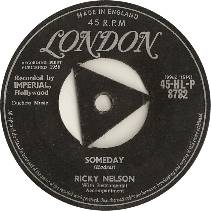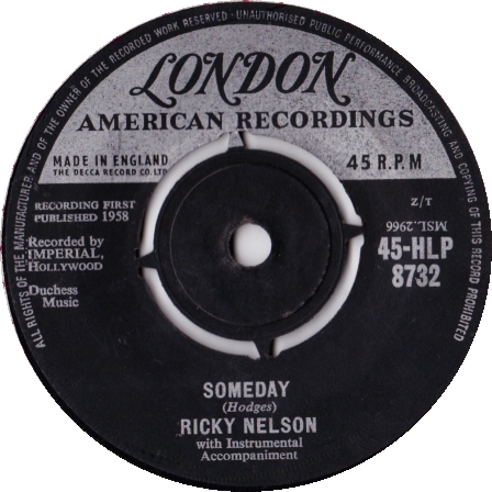 In England kam ihr “Someday“ (HMV POP 533) für 10 Wochen in die Charts mit höchster Platzierung # 14 im Oktober 1958.