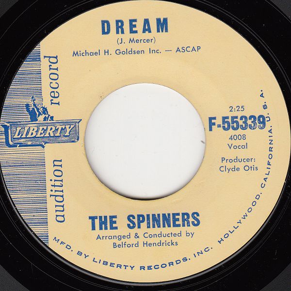 Ich habe auf der Börse eine Single von den Spinners erstanden, die nichts mit Harvey Fuqua (links klicken) zu tun hatten, sondern ein Produkt von Clyde Otis war der, wie ich vermute, wegen des Namens Schwierigkeiten bekam, da Fuqua kurz vorher eine Formation dieses Namens gründete. Die Otis-Gruppe hieß daher bei der zweiten Single, vermutlich gab es nicht mehr, The Chord Spinners.