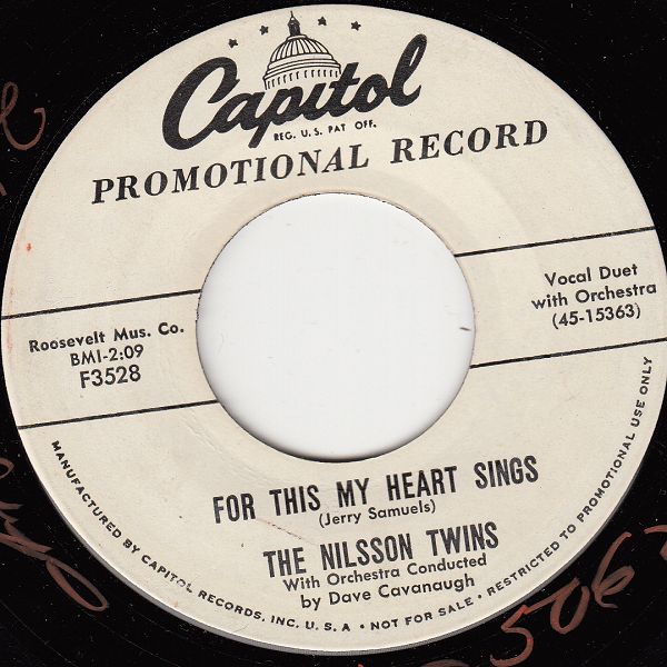 09 56....F3528....THE NILSSON TWINS With Orchestra Conducted by Dave Cavanaugh..For This My Heart Sings (45-15363)/Hot Dog! Ting-A-Ling (45-15364)