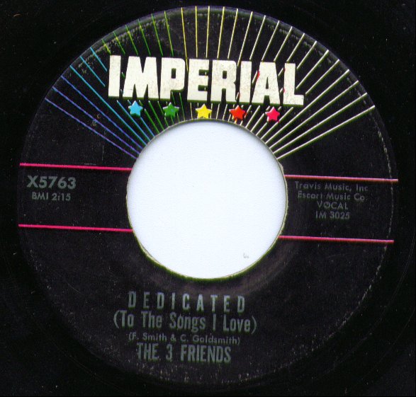 06 61....X5763....THE 3 FRIENDS..Dedicated (To The Songs I Love) (IM 3025)/Happy As A Man Can Be (IM 3026)