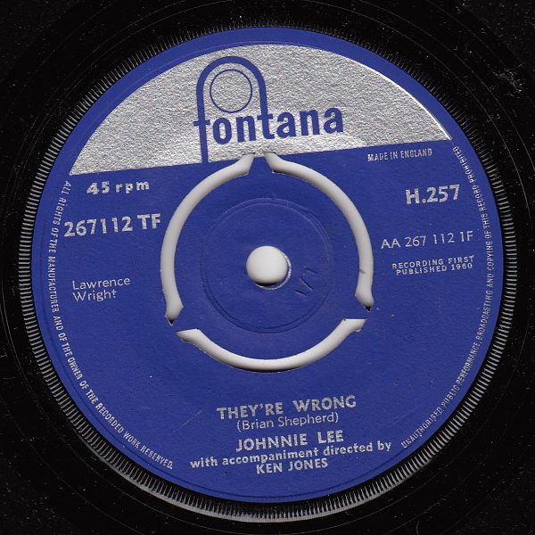 06 60....H.257 (267 112 TF)....JOHNNIE LEE with accompaniment directed by KEN JONES..They're Wrong/Cindy Lou