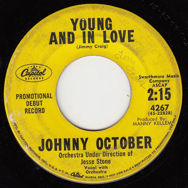 09 59....4267....JOHNNY OCTOBER Orchestra Under Direction of Jesse Stone Vocal with Orchestra..Young And In Love (45 22828)/Growin' Prettier (45 22829)