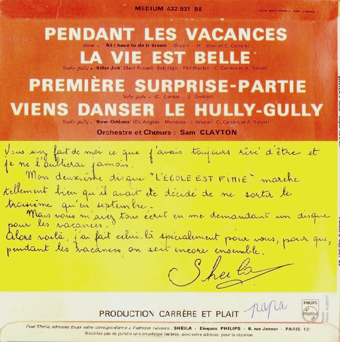 Ihre erste veröffentlichte Single hieĂ Sheila. In der Folgezeit hatte sie in den 1960er und 1970er Jahren mehrere Hits, wobei sie den Typ des wohlbehĂŒteten jungen MĂ€dchens verkörperte. Ihr erster Hit war 1962 LâĂ©cole est finie (Die Schule ist zu Ende).