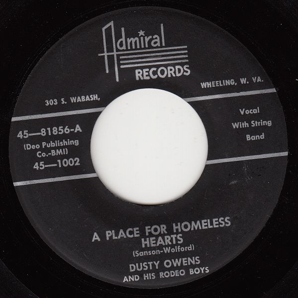 01 57....45—1002....DUSTY OWENS AND HIS RODEO BOYS..A Place For Homeless Hearts (45—81856 A)/Cure That Shyness (45—81856 B)