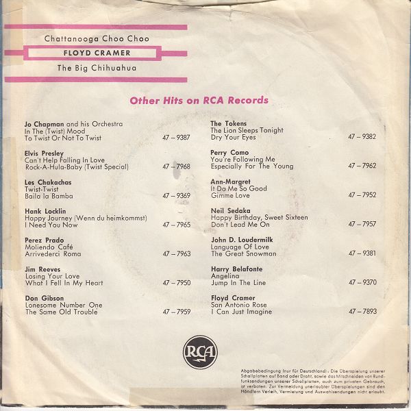 03 62....47-9391....FLOYD CRAMER..Chattanooga Choo Choo/The Big Chihuahua (RCA VICTOR 7978/7388)