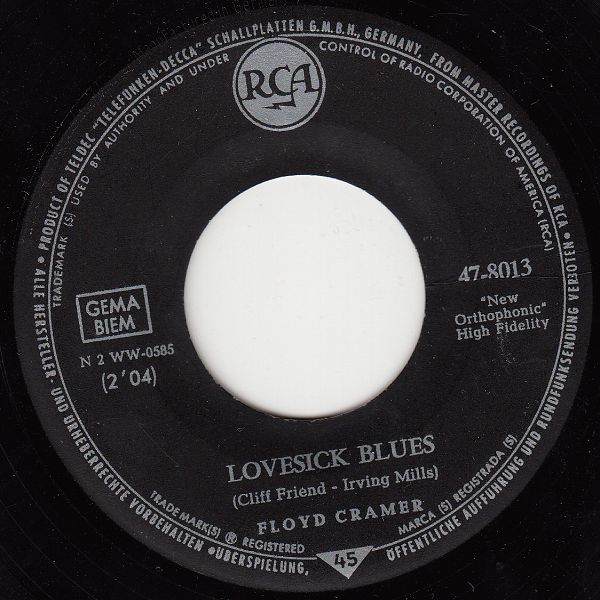 03 62....47-8013....FLOYD CRAMER..Lovesick Blues (N2WW 0585)/The First Hurt (M2WW 1026)