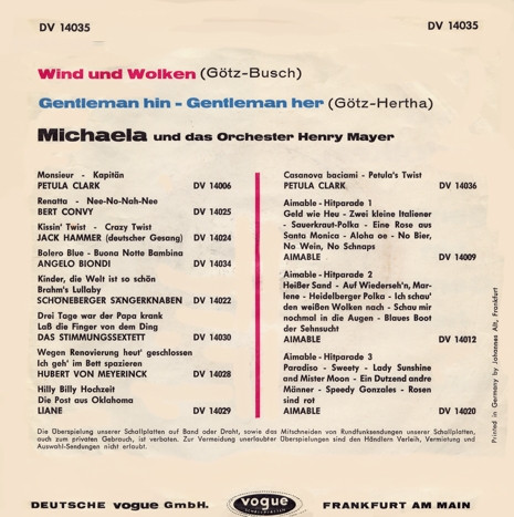 startete und Anfang 1963 mit "Wind und Wolken" auf Vogue DV 14.035