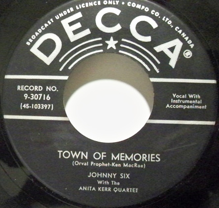 08 58....9-30716....JOHNNY SIX With The ANITA KERR QUARTET..Town Of Memories (103,397)/Half A Heart (103,398)