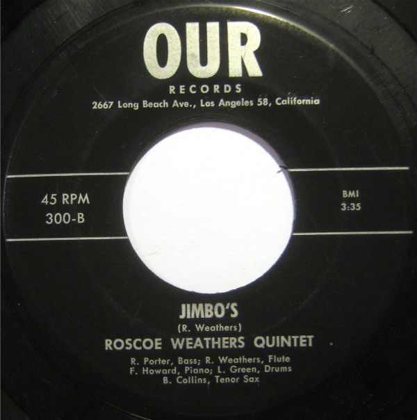 ?? 58....300-A....ROSCOE WEATHERS QUINTET R. Weathers, Alto Sax R. Porter, Bass; F. Howard, Piano L. Green, Drums..What’s New/-B….ROSCOE WEATHERS QUINTET R. Porter, Bass; R. Weathers, Flute F. Howard, Piano; L. Green, Drums B. Collins, Tenor Sax..Jimbo’s