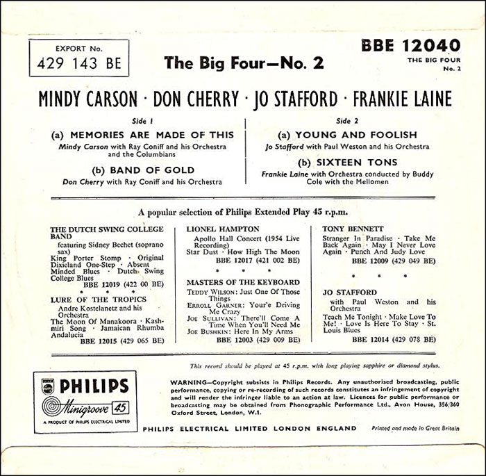 A2 Jo Stafford and Quartet with Paul Weston and his Orchestra