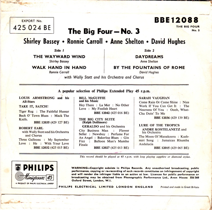 Bei der europäischen PHILIPS gab es eine Reihe von "Various Artists"-EP-Serien. Die Idee diese vorzustellen bekam ich, als ich auf einem Flohmarkt ein Cover einer solchen Serie bekam, allerdings war eine völlig andere Single darin. Außerdem hatte die Hülle, ein "antikes" Stück, schon Einiges abgekommen, was hoffentlich nicht allzusehr stört. Die Akropolis ist auch schon sehr desolat und trotzdem besichtigen sie Alle die in ihre Nähe kommen.