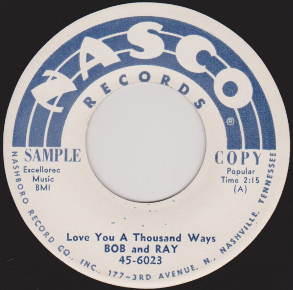 Bob and Ray waren ein Autoren-Team aus Nashville namens Bobby Johnson und Herman Raymer, die fallweise ihre Songs mit diversen Interpretennamen auch selbst vortrugen, wie beispielsweise die zwei Singles auf Nasco. Bobby Johnson war schon vorher in gleicher Angelegenheit (Autor und Interpret) bei den Sprouts (links klicken) tätig.